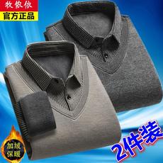 两件装男士衬衫加绒加厚假两件长袖衬衣中老年人过冬内穿打底衫男