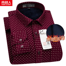啄木鸟本命年大红色保暖衬衫男长袖加绒加厚一体衬衣中老年爸爸装
