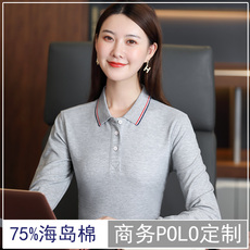 秋季职业装灰色T恤长袖商务Polo广告衫定做印字商场收银经理制服