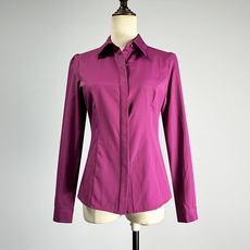 紫色长袖衬衫女2025职业装修身显瘦收腰单排扣POLO领制服衬衣