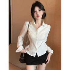 polo领长袖修身性感纯欲辣妹白衬衫OL职业工作服秋制服上衣衬衣女