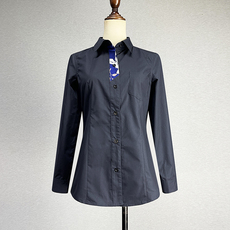 藏青色长袖衬衫女2025职业装修身显瘦单排扣POLO领深蓝色制服衬衣
