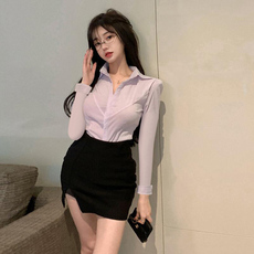 御姐收腰性感纯欲秋季上衣衬衣长袖夜场制服修身ol职业白衬衫女装