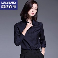 璐丝百丽藏蓝色别致衬衫女长袖职业装衬衣春秋法式新款气质工作服