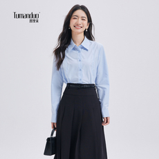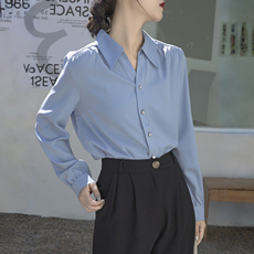 图曼朵蓝色长袖衬衫女秋高级感通勤职业衬衣面试正装上衣职场穿搭