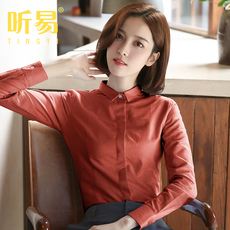 白衬衫女长袖韩范雪纺2025秋冬新款修身工衣打底红色OL职业装衬衣