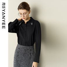 颜域职业气质长袖衬衫女2025秋装新款高级感轻熟风黑色显瘦上衣女