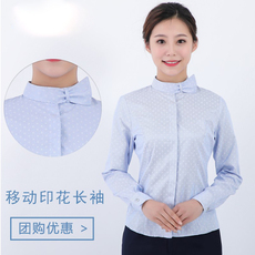 2021新款移动工作服女春秋长袖衬衫大码公司营业厅工装蓝衬衣西裤