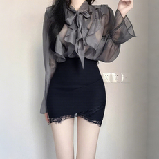 气质荷叶边半身裙女春秋2025新款显瘦高腰包臀一步裙中长款职业裙