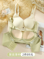内衣女无钢圈小胸聚拢收副乳厚薄款文胸调整型蕾丝上托女士文胸罩