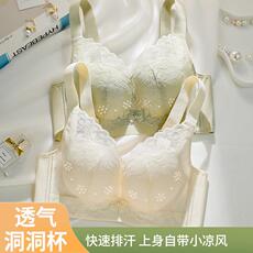 夏季薄款透气洞洞内衣女无钢圈聚拢上托防下垂收副乳调整型薄文胸