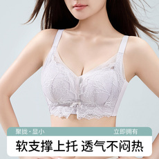 中年文胸蕾丝前扣内衣妇女小胸中厚聚拢收副乳防下垂调整型无钢圈