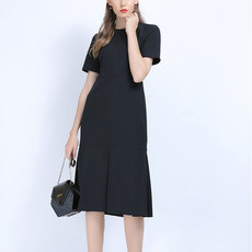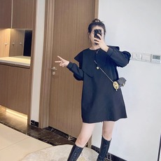 媛子家大码秋季韩版休闲胖mm黑色圆领遮肉百搭高级感长裙连衣裙女