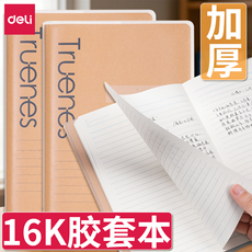 得力16K笔记本加厚胶套本高颜值记事本本子大学生用B5小清新日记本32K大号16开考研本高中生专用简约ins风