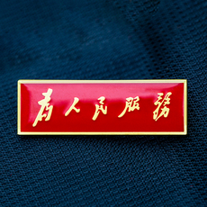 毛体为人民服务长方形高级感胸针长条烤漆胸章红色纪念章5*1.5cm