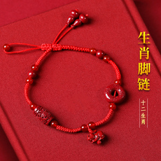 普陀山本命年太岁朱砂红绳脚链女生肖男马鼠牛兔鸡吉祥物官方直营