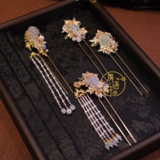 夙语轩汉服发饰配饰国风旗袍发簪发夹发梳璎珞神棍仿点翠系列