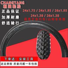 朝阳自行车轮胎外胎特加厚24/26寸x1 3/8山地车1.75/1.95防刺耐磨
