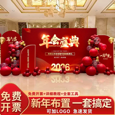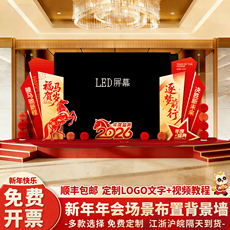 2026新年装饰场景布置马年公司春节年会总结舞台led屏幕两侧kt板