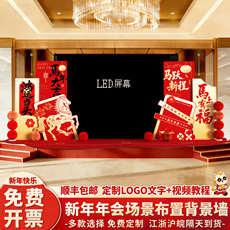 2026公司年会LED两侧场景氛围布置新马年装饰现场舞台背景墙kt板