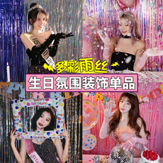 镭射派对流苏雨丝帘儿童生日装饰彩条舞台背景墙布置新年活动彩带