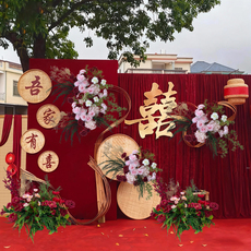 订婚宴中式布幔结婚红色金丝绒背景布舞台现场布置纱幔庭院婚礼