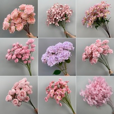 粉色系仿真花艺婚庆玫瑰绣球装饰舞台背景路引花插花婚礼堂布置花