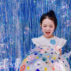 镭射流苏雨丝帘舞台装饰生日派对布置儿童场景彩条背景墙飘空丝带