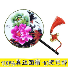 真丝女扇双面宫扇折扇女式扇子跳舞团扇复古汉服舞蹈牡丹扇杨贵妃