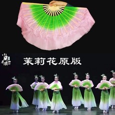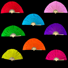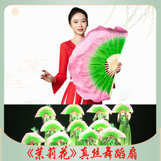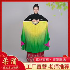 真丝舞蹈扇黄绿双色跳舞扇海派秧歌扇广场舞跳舞大扇道具扇子一对