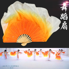 橘黄渐变真丝舞蹈扇东方红舞蹈广场舞海派秧歌跳舞扇古典舞手绢