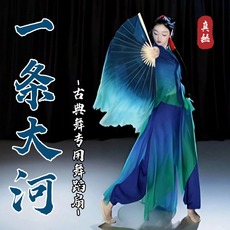 扇子舞蹈扇真丝长绸扇广场舞跳舞扇子左手指月如烟水墨渐变扇子舞