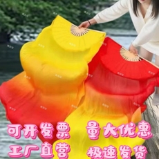 真丝舞蹈扇 米黄渐变长绸扇考级秧歌扇中国古典舞广场舞表演跳舞