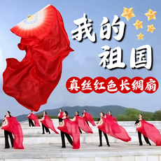 扇子舞蹈扇我的祖国真丝长飘大红正染加长绸扇古典舞跳舞演出道具