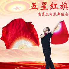 国旗舞蹈扇双面跳舞扇子红色爱国广场舞扇秧歌扇红色摇篮表演长扇