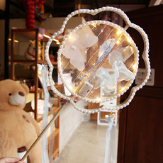 复古风绒毛发光团扇子 跳舞蹈拍摄影带灯双层圆形宫扇复古风花朵