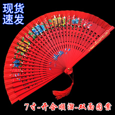 大红色扇子折扇中国风易开合舞蹈扇子古风汉服旗袍走秀跳舞折叠扇