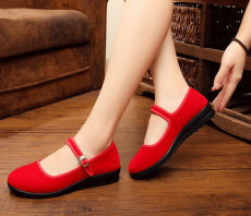 老北京布鞋女妈妈跳舞鞋广场舞蹈鞋一字搭扣中跟软底大码工作鞋