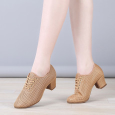 夏季舞蹈鞋女真皮网面软底广场舞鞋中跟透气跳舞鞋四季现代舞鞋