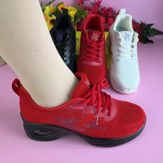 夏季薄款网面透气大红色运动鞋女厚底软底轻便跳舞鞋广场舞舞蹈鞋