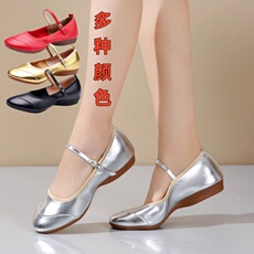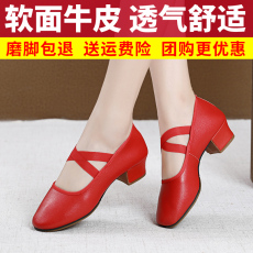 真皮夏季舞蹈鞋四季跳舞鞋女软底皮鞋交际舞单鞋中跟广场舞演出鞋