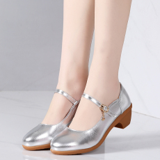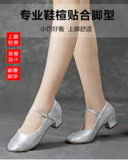 广场舞蹈鞋女儿童节软牛筋底跳舞鞋银色交谊舞中跟粗跟舞台演出鞋