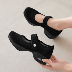 圆头夏季女鞋休闲新款百搭透气坡跟广场舞网鞋软底舞蹈鞋运动鞋