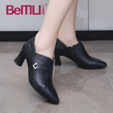 2025春季新款真皮单鞋女舒适工作鞋休闲鞋广场舞蹈鞋粗跟高跟鞋