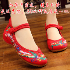 老北京布鞋绣花鞋女休闲旅游鞋民族风中老年妈妈内增高广场舞蹈鞋