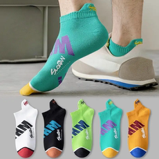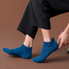 外贸单袜子男运动纯棉袜短筒春季网眼透气带后腰浅口船袜压力男袜
