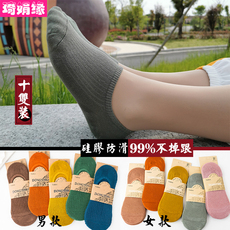 情侣袜子纯棉男女船袜夏季短袜薄款隐形浅口防臭吸汗硅胶防滑袜子