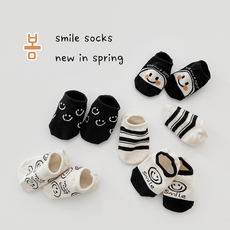 儿童袜子夏季薄i黑白笑脸隐形袜棉男女童浅口船袜ins卡通宝宝袜潮