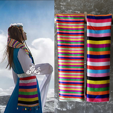 七彩绸缎彩条布料彩虹条纹色丁民族舞蹈辞母藏族朝鲜族演出服面料