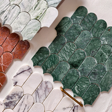 法式石材马赛克绿色天然大理石拼花户外瓷砖阳台酒店民宿背景墙